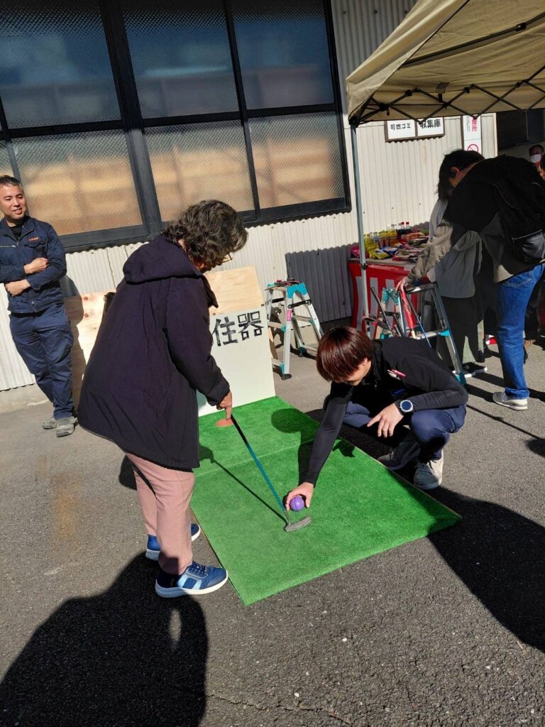 大人も子どももパターゴルフしてお菓子貰って