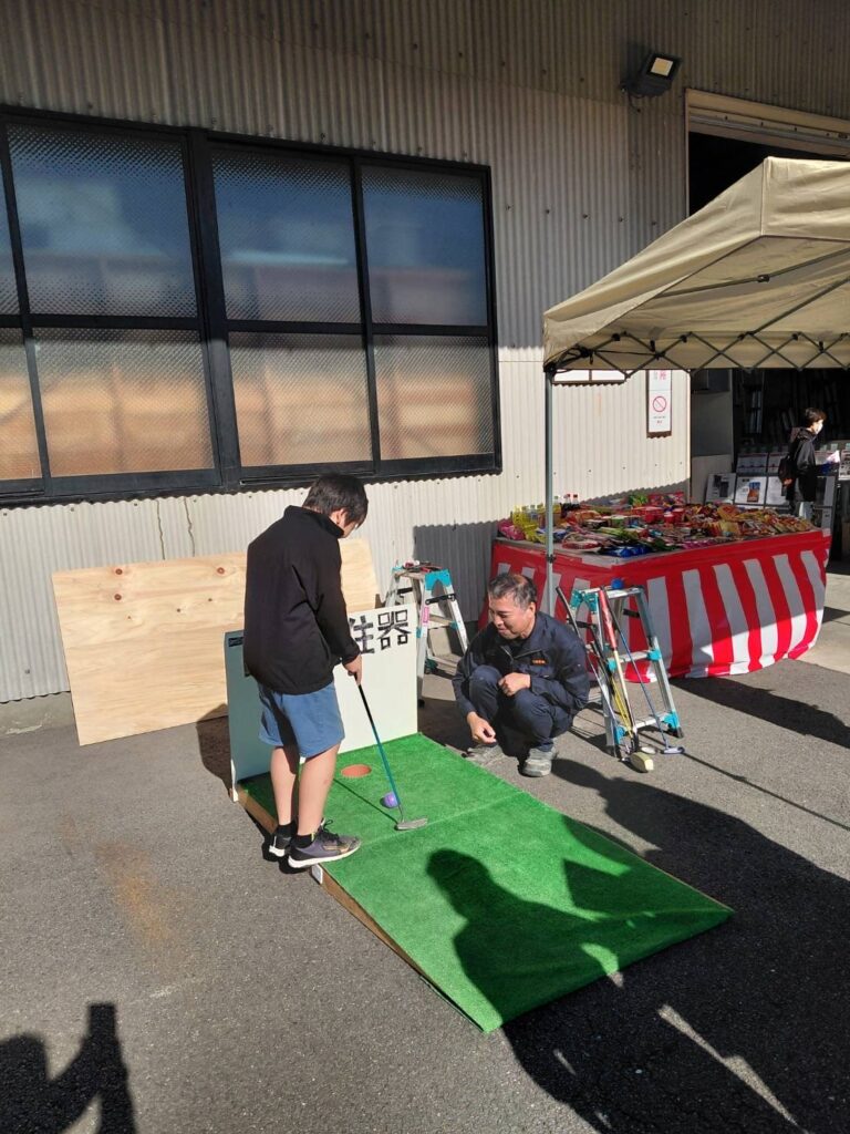 大人も子どももパターゴルフしてお菓子貰って